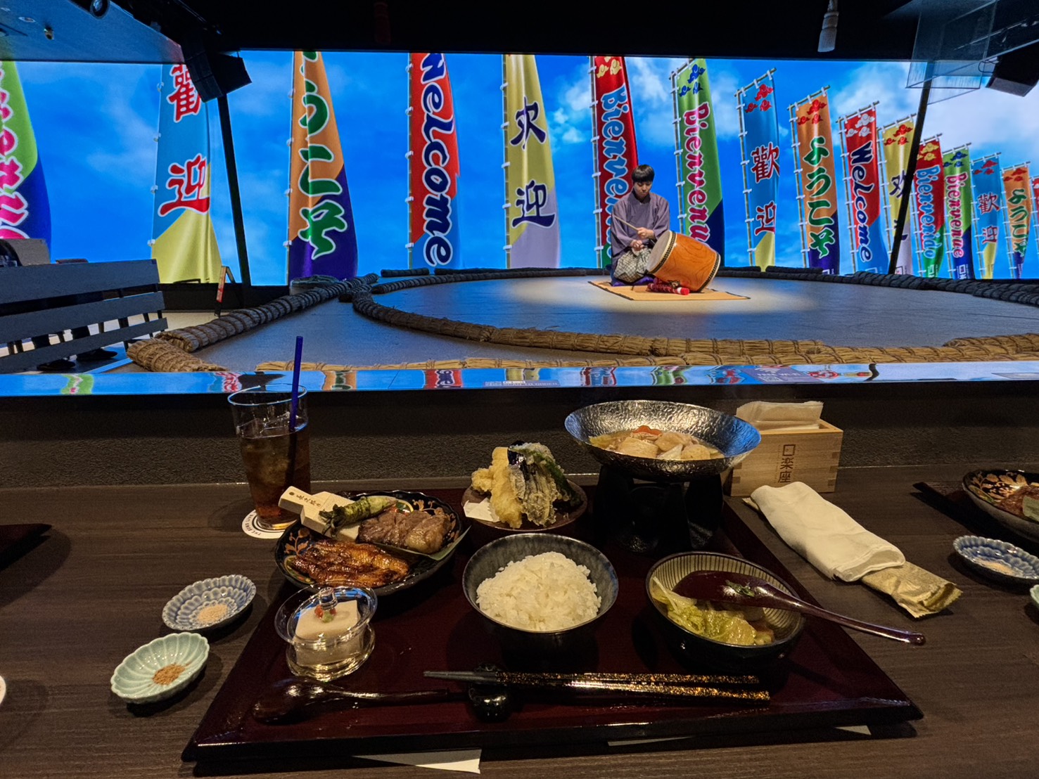 食事とともに相撲ショーを楽しめる、銀座でも珍しい体験型レストランです。